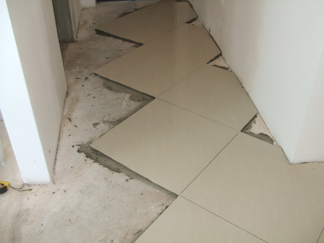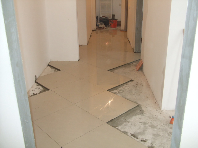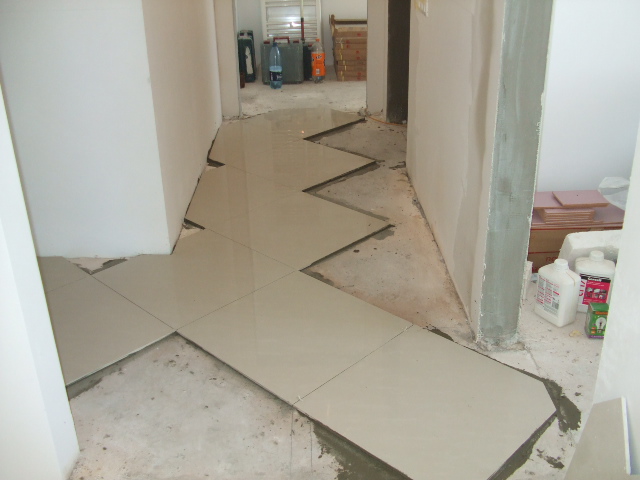 amenajare hol apartament (montare gresie in diagonala)